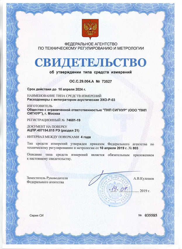 РАСХОДОМЕР С ИНТЕГРАТОРОМ АКУСТИЧЕСКИЙ ЭХО-Р-03