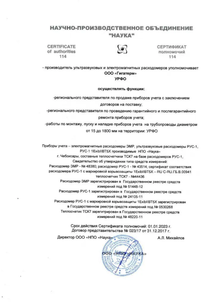 Ультразвуковой расходомер РУС-1 внесен в Госреестр средств измерения РФ под № 24105-06.